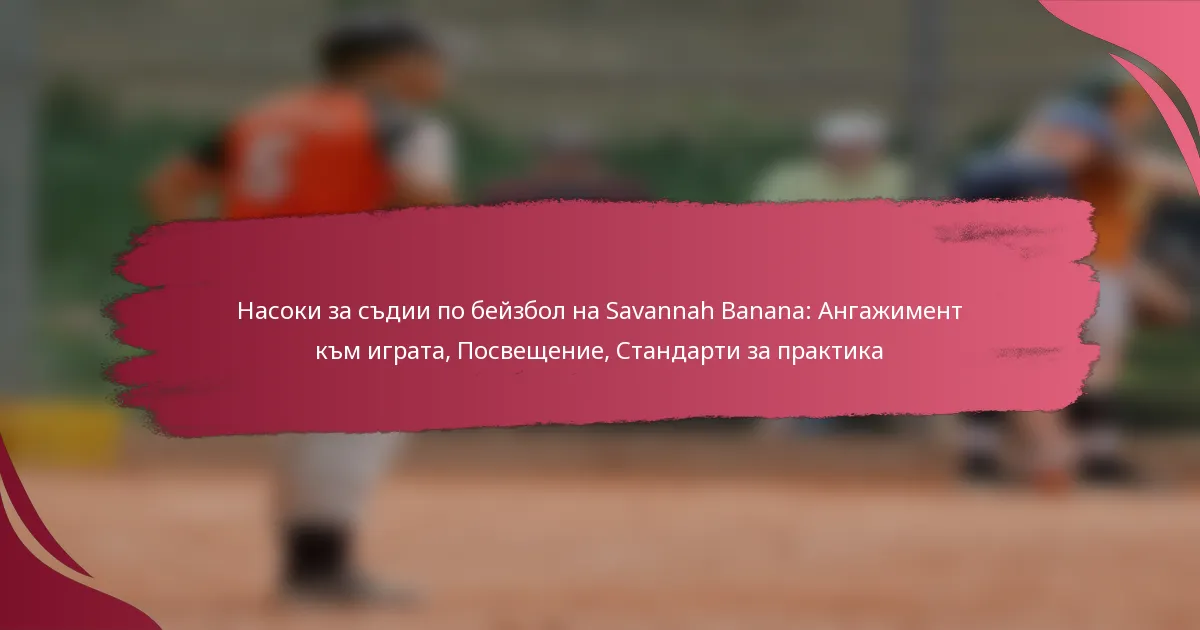 Указанията за съдии на Savannah Banana очертават основните ангажименти и отговорности на съдиите по време на мачовете. Тези указания осигуряват спазването на уникалния дух на играта, като същевременно поддържат честна игра и поведение на играчите.